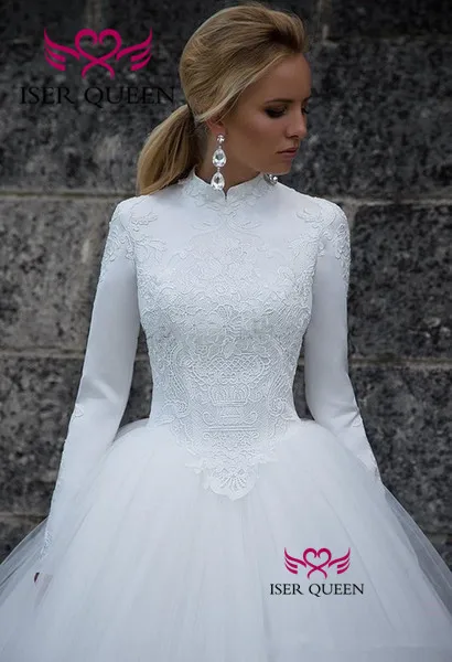 Excellent Hoge hals Lange Mouwen Moslim Trouwjurk 2019 Back Ontwerp Rits Vintage Pure White A-lijn Prinses bruid Jurk w0532 Best Reviews Of