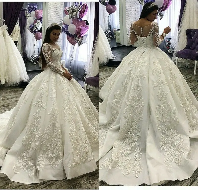 Excellent Lace Up Corset Trouwjurken Bridal Baljurken Lange Mouwen Bruid Bridal Jurken Applicaties Custom Who Sells