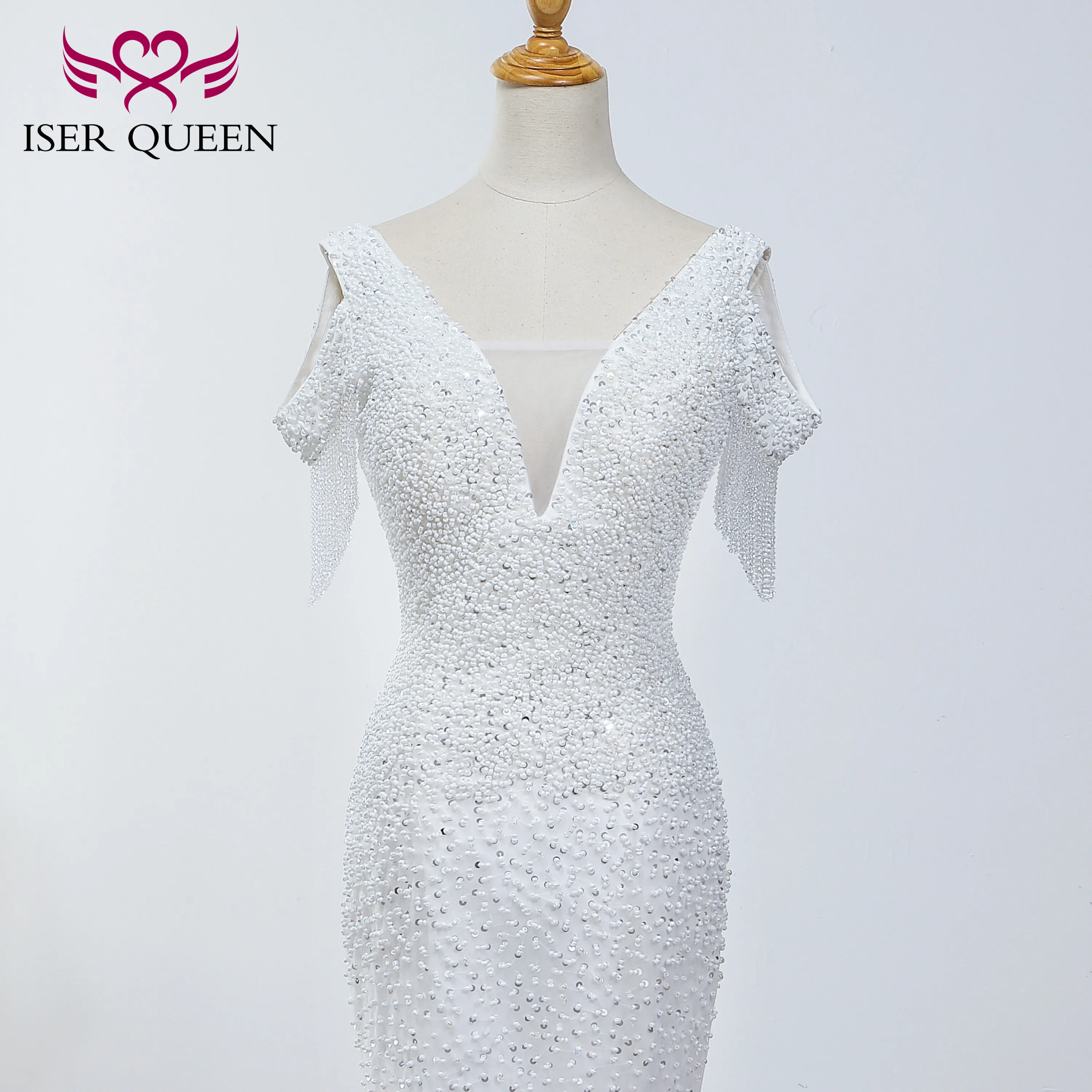 Excellent Parels Kralen V-hals Kapmouwtjes Mermaid Wedding Dress 2020 Elegant Zuiver Wit Geborduurd Kant Bruid Jurk WX0037 Best Price