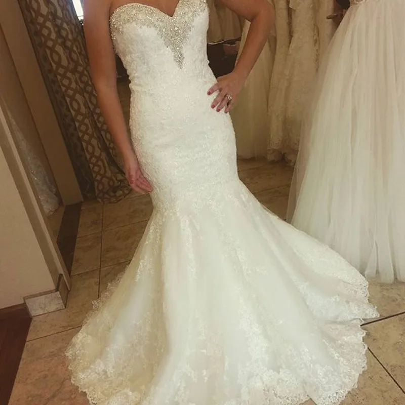 Excellent Vintage Mermaid Sweetheart Lange Kant Bruidsjurk Crystal Kralen Vestido De Noiva 2018 Casamento Moeder Van De Bruid Jurken Best Price