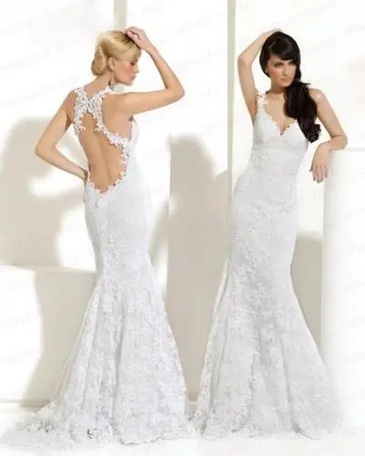 Very Good Gratis Verzending 2016 Nieuwe Ontwerp Sexy Backless Lange Jurk Aangepast Formaat/Kleur Wit Mermaid Lace Gown Formele Band Bruiloft jurken Cheapest