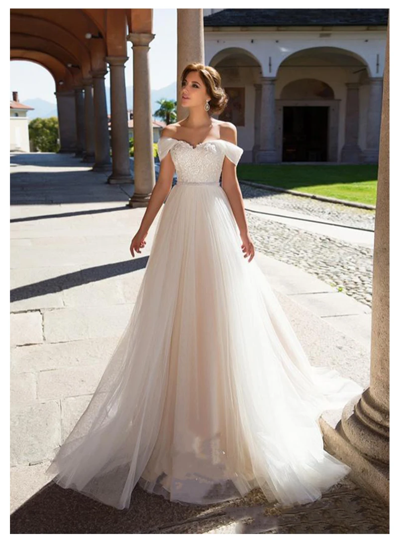 Very Good LORIE Boho Trouwjurk Uit De Schouder Fee EEN Lijn Vintage Prinses Trouwjurk Tule Strand Bruid Jurk 2019 Compare Prices For