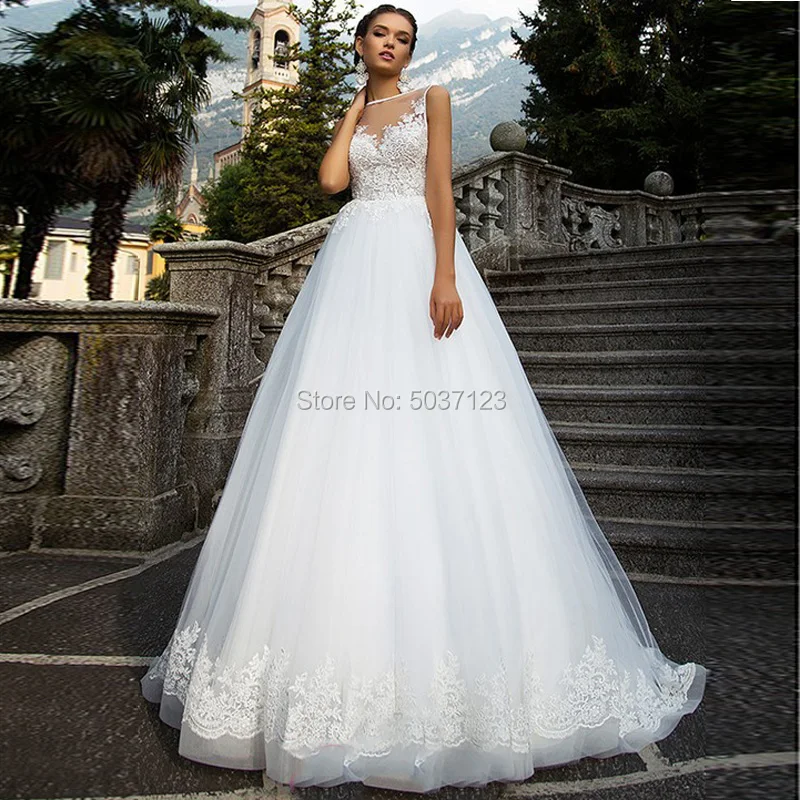 Very Good Vestido De Noiva EEN Lijn Tulle Trouwjurken Scoop Sleeveless Kant Applicaties Ruglooze Bruidsjurken Sweep Trein Plus Size Who Sells Sheap