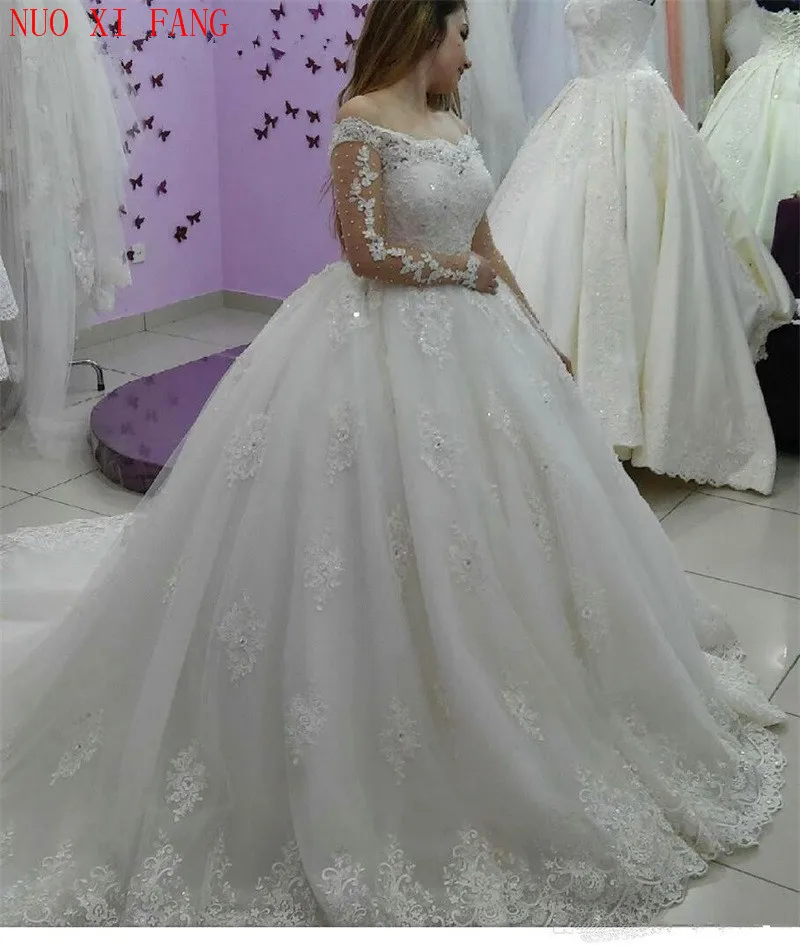 Wonderfull Arabische Dubai Prinses Trouwjurk Uit De Schouder Bruidsjurken Kralen Parels Lange Mouwen Kant Applicaties Vestidos De Novia Discounted