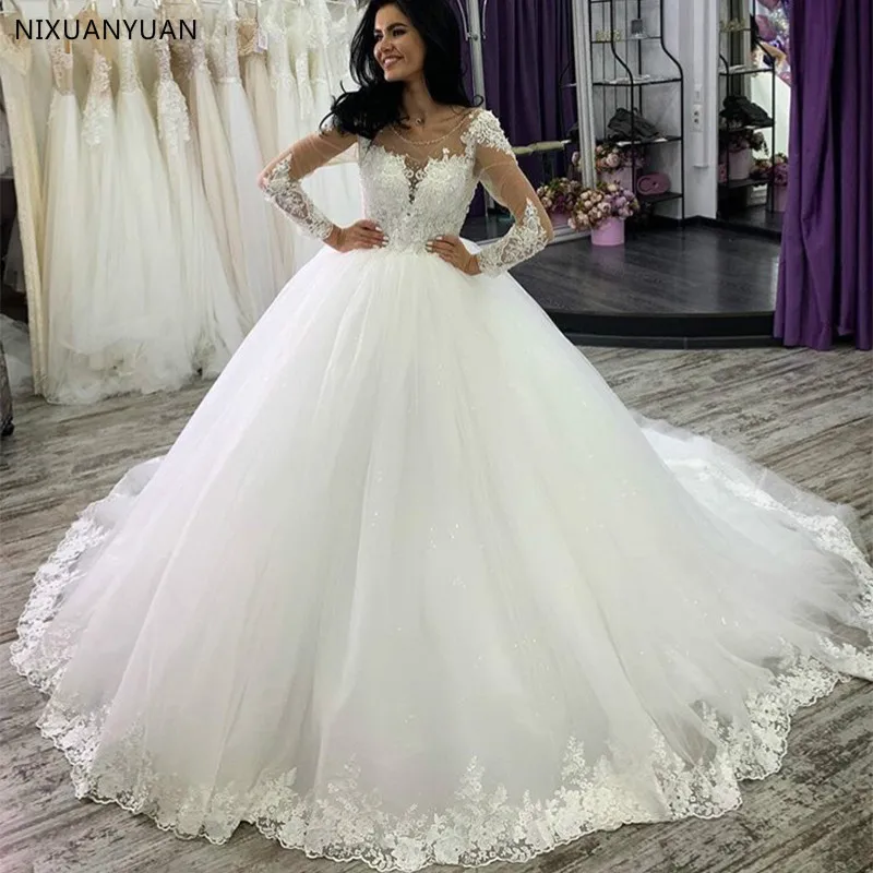 #^Special Price Vestido De Noiva 2020 Baljurk Lange Mouwen Trouwjurk Prinses Applicaties Wit Ivoor Bruid Jurk Bruidsjurk Robe De mariee